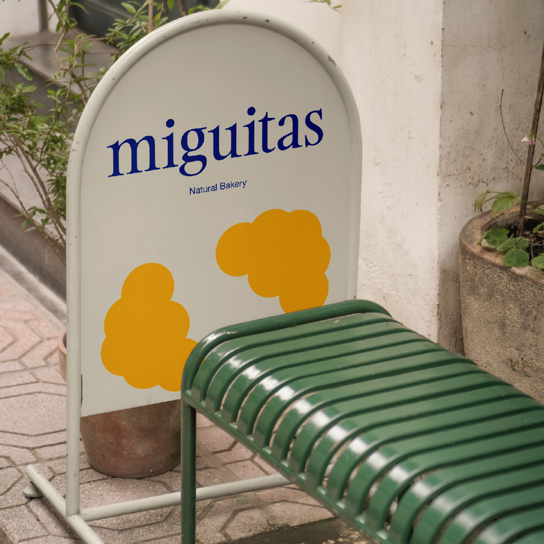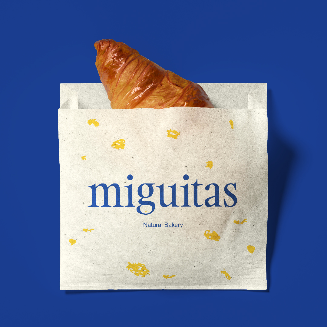 Diseño de naming e identidad corporativa de la panadería Miguitas. A partir del nombre se escoje un tono desenfadado con pequeñas ilustraciones que dialogan con el logotipo y hacen del espacio un lugar cálido y acogedor.